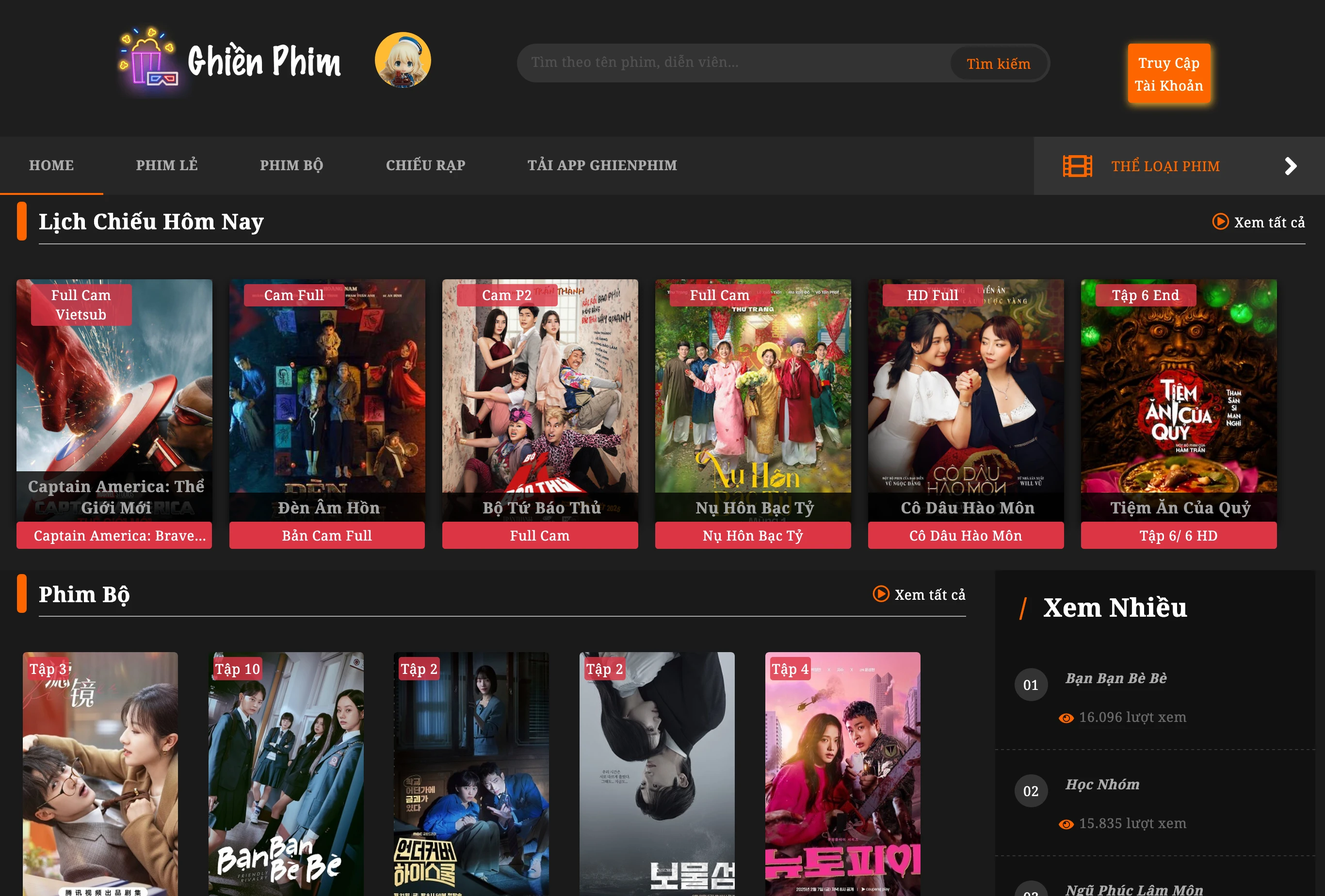 So với Ghienphim, vốn có giao diện đơn giản nhưng chưa thực sự tối ưu trong việc tìm kiếm phim, CayTv.tv mang đến một trải nghiệm mượt mà hơn nhờ vào thiết kế giao diện trực quan, khoa học, giúp người dùng dễ dàng tiếp cận và lựa chọn nội dung yêu thích. Với thanh tìm kiếm thông minh và hệ thống danh mục phim được sắp xếp hợp lý, CayTv.tv giúp khán giả nhanh chóng tìm thấy bộ phim mong muốn mà không mất nhiều thời gian.